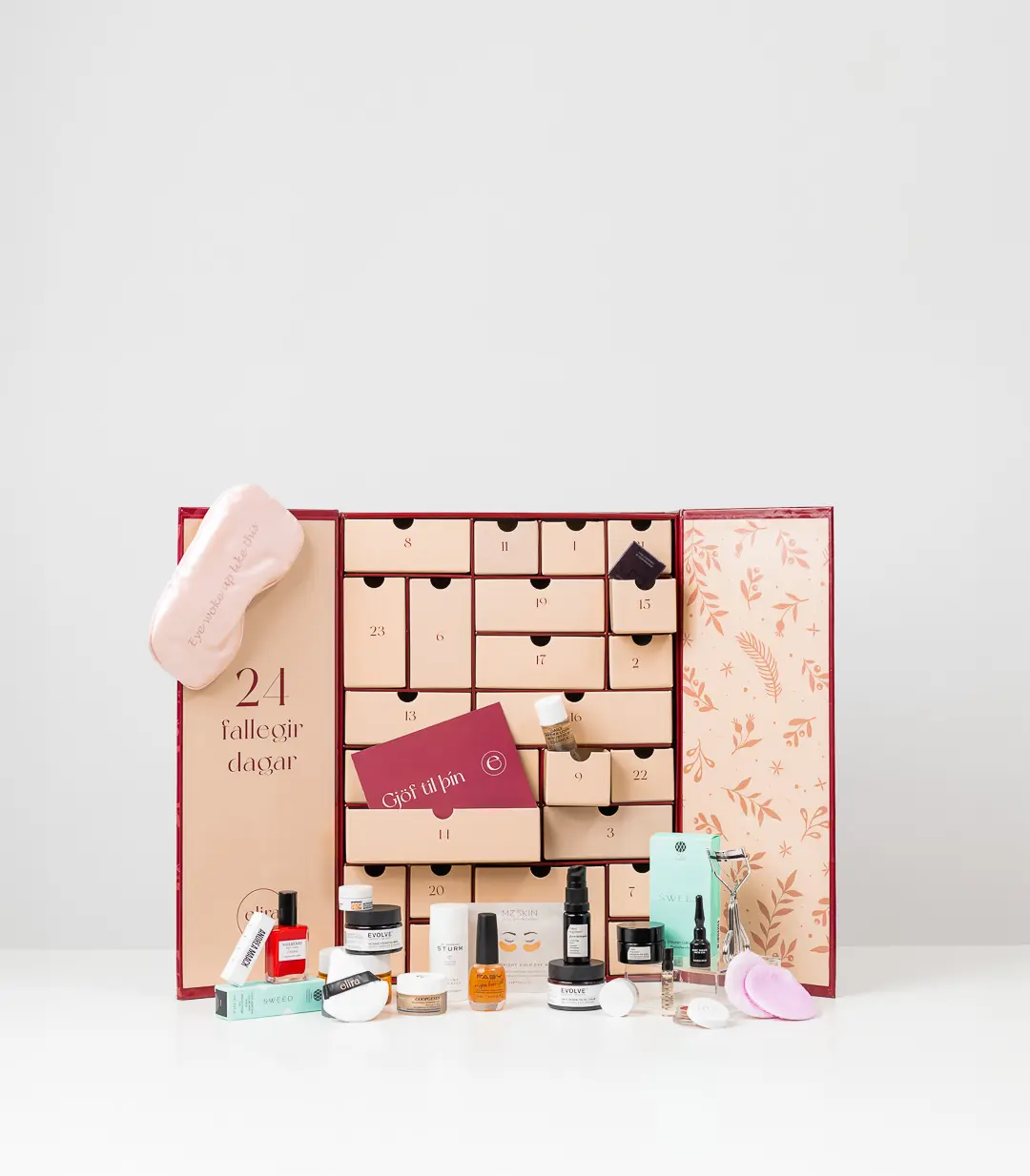 Dagatalið er 120.000 krónar virði. Dagatalið inniheldur þessar vörur: